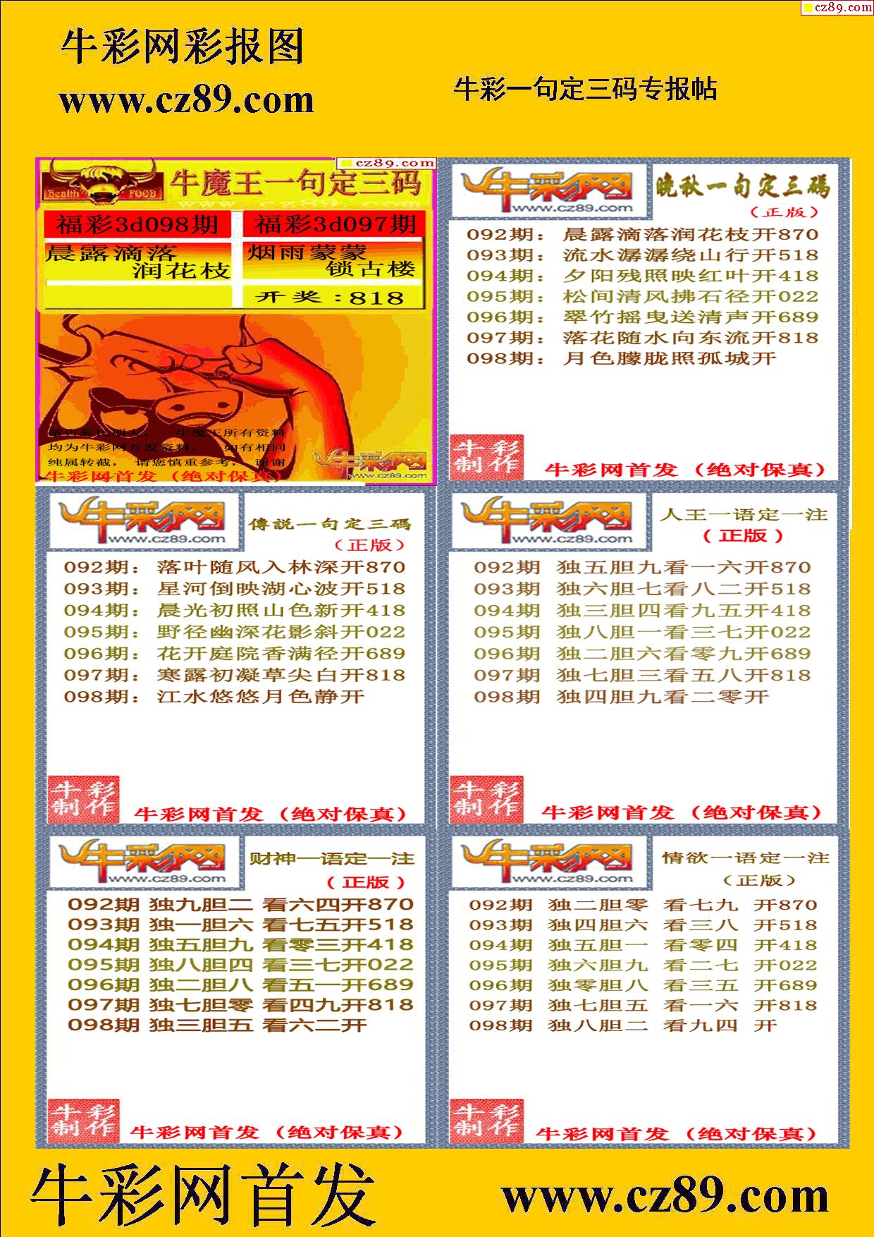 首页 > 福彩3D图谜 > 2026098期牛彩专家一句定三码彩报