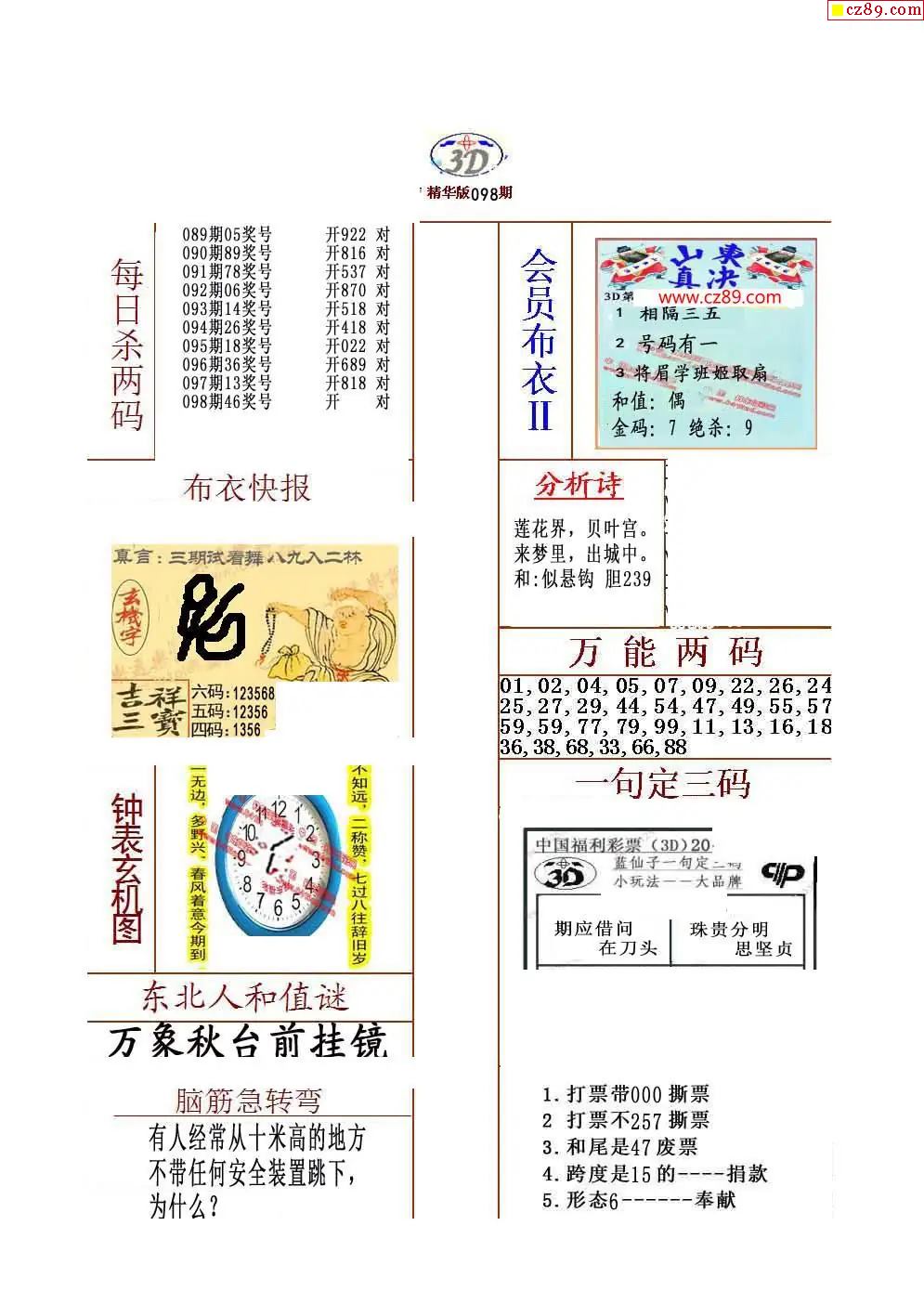 真精华布衣报2026098期3d图谜
