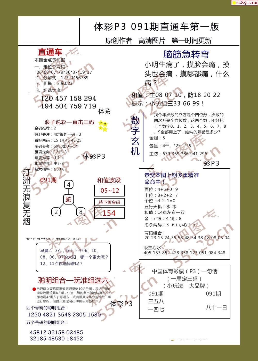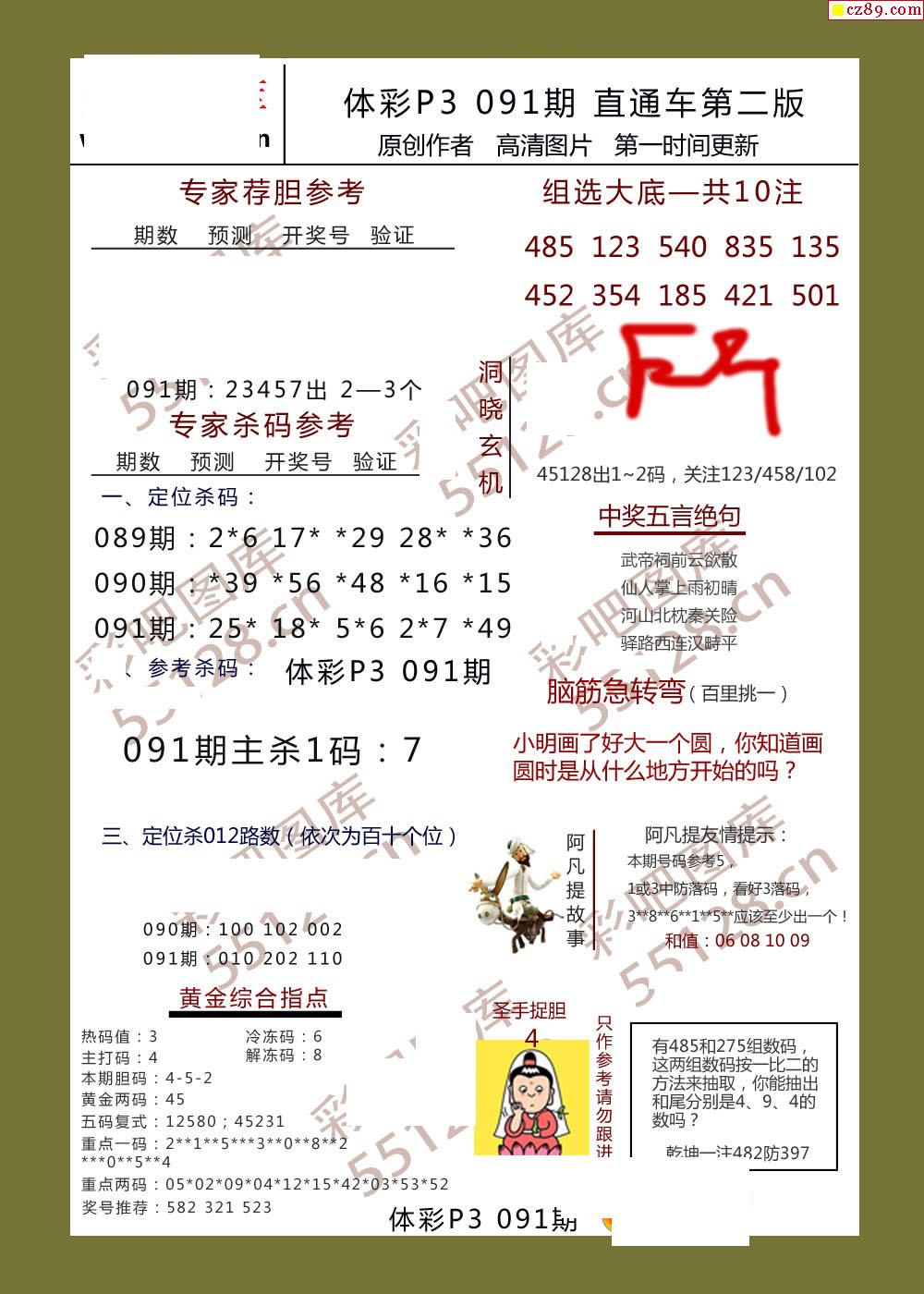 直通车AB版091期体彩p3图谜