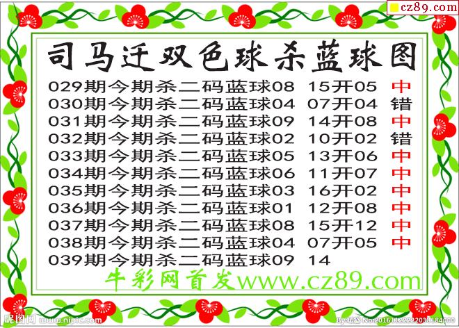 > 双色球039期 司马迁杀两码蓝球图谜 10中8