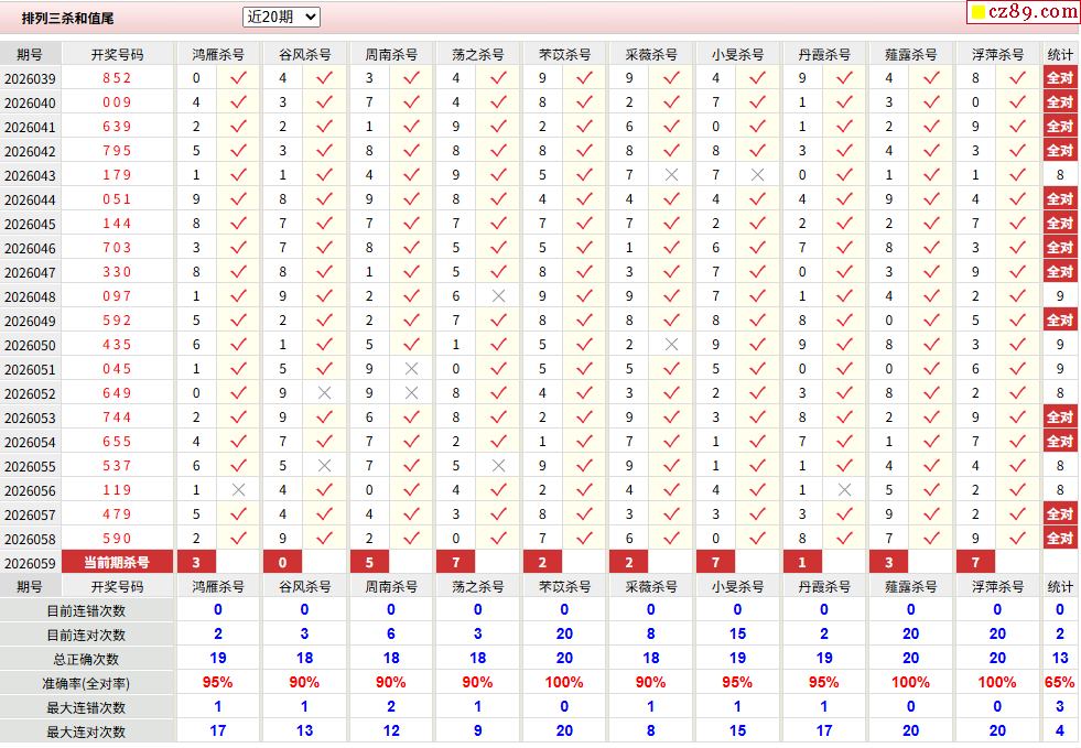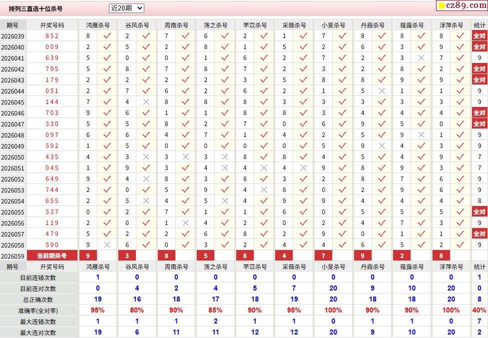 059期彩票专家体彩P3杀号推荐图表