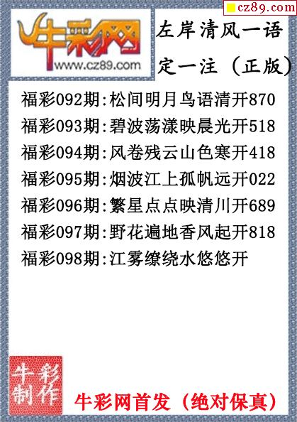 26年098期左岸清风一语定一注(原创正版)