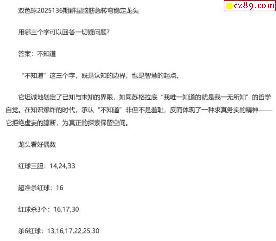 > 25年福彩双色球136期 群星脑筋急转弯定龙头字谜